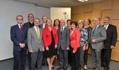 1. Reihe: OA Dr. Robert Deinsberger (1. Oberarzt der Abteilung für Neurochirurgie, LK St. Pölten), Univ.-Prof. Dr. Engelbert Knosp (Klinikvorstand der Univ. Klinik für Neurochirurgie, AKH Wien), Christa Stelzmüller, MAS (Regionalmanagerin NÖ Mitte), Univ.-Prof. Prim. Dr. Karl Ungersböck (Abteilungsvorstand der Neurochirurgie, LK St. Pölten), Michaela Gansch, MSc (Pflegedirektorin, LK St. Pölten), Christine Hochgerner (Stationsleitung Neurochirurgie Bettenstation 1), Silvia Heinzl (Stationsleitung Neurochirurgie Bettenstation 2/Mund-Kiefer-Chirurgie, LK St. Pölten), Landeshauptmann-Stellvertreter Mag. Wolfgang Sobotka, Dr. Robert Griessner (Medizinscher Geschäftsführer der NÖ Landeskliniken-Holding) 2. Reihe: Dr. Andreas Schneider (Ärztlicher Direktor LK St. Pölten-Lilienfeld), Prof. Dr. Gerhard Bavinzski (Oberarzt an der Univ. Klinik für Neurochirurgie, AKH Wien), Margit Steindl (Bereichsleitung OP, LK St. Pölten), Karin Holzedl (Stationsleitung Neurochirurgie-OP, LK St. Pölten)