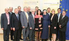 (v.l.) Dir. Mag. Josef Brandstötter, Dr. Robert Kellner, Altbürgermeister Ing. Maximilian Kaltenböck, Dir.-Stv. Karl Reiser, MBA, Kaufm. Direktor Dipl. KH-BW PhDr. Josef Schneider, MBA, ehem. Stadtrat Karl Groß, Ärztl. Dir. Prim. Univ.-Doz. Dr. Rudolf Kuzmits, Bezirkshauptmann Mag. Stefan Grusch, Pflegedir. DGKS Ingrid Czink, Oberschwester Carmen Hütter, Regionalmanager Dipl. Ing. Jürgen Tiefenbacher, Landesrätin Mag. Barbara Schwarz, Bürgermeister Erwin Bernreiter, Bereichsleiter Roman Gaal, MSc, MAS