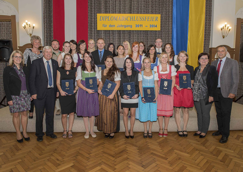 22 Schülerinnen und Schüler nahmen am 29. September 2014 ihre heiß ersehnten Diplome entgegen. Insgesamt 3 Jahre dauerte die Ausbildung an der Schule für allgemeine Gesundheits- und Krankenpflege in Scheibbs, wo umfangreiches theoretisches und praktisches Wissen im Bereich der Krankenpflege vermittelt wurde. Die Qualität der Ausbildung zeigt sich in den Ergebnissen der Diplomprüfungen wider: Die Hälfte der Absolventinnen und Absolventen (11) schlossen ihre Ausbildung mit ausgezeichnetem, 8 Personen mit gutem und alle anderen mit Erfolg ab und können nun ihre Arbeit in der Gesundheits- und Krankenpflege aufnehmen.