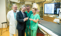(v.l.) Prim. Assoc. Prof. Dr. Harald Mayr, Leiter der Inneren Medizin 3; Landesrat Mag. Karl Wilfing, OA Dr. Paul Vock, Petra Schlossnagl, MAPetra Schlossnagl, MA, leitende Radiologietechnologin