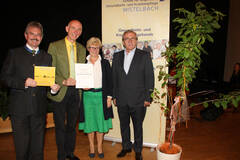 Der NÖ Pflegefrühling 2014 stand unter dem Motto „Lebenssinn & Lebensfreude“. Dabei wurde Dir. Johannes Rieder (Mitte) von Landesrat Mag. Karl Wilfing (li) und dem Kaufmännischen Direktor des Landesklinikums Mistelbach-Gänserndorf, Dipl. KH-BW Josef Kober (re) für seine langjährige Tätigkeit als Organisator mit einer Dankesurkunde und einem Kirschenbäumchen geehrt. Darüber freute sich auch Gattin Theresia (Mitte).