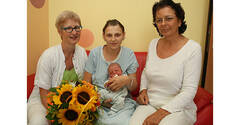 (v.l.) Stationsleitung-Stv. Hebamme Barbara Schneck und OÄ Dr. Martha Kassovic gratulierten Birgit Hruby mit Maximillian (Bildmitte) sehr herzlich.