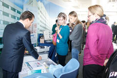 Parallel zu den Fachvorträgen hatten die Teilnehmerinnen und Teilnehmer die Möglichkeit, sich bei einer Ausstellung von Medizin- und Gesundheitstechnikprodukten über Neuerungen und Innovation zu informieren und sich auszutauschen.