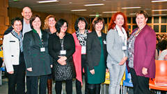 (v.l.) Bianca Hauer (stellvertretende Pflegedirektorin Landesklinikum St. Pölten), Hans Härting (Kapitän Austrian Airlines), DGKS Veronika Köck (OP-Leitung Landesklinikum St. Pölten), DGKS Romana Kögl (OP-Leitung Gynäkologie am Landesklinikum St. Pölten), DGKS Gerlinde Ott (HNO-OP-Leitung Landesklinikum St. Pölten), DGKS Rita Hauser (Kiefer-OP-Leitung Landesklinikum St. Pölten), Michaela Gansch, MSc (Pflegedirektorin Landesklinikum St. Pölten), DGKS Margit Steindl (OP-Bereichsleitung Landesklinikum St. Pölten), DGKS Karin Holzedl (OP-Leitung Landesklinikum St. Pölten)