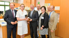 (v.l.) Regionalmanager Dr. Andreas Reifschneider, Apothekenleiterin Mag. Karina Hartenstein, LR Mag. Karl Wilfing, Ärztlicher Direktor Prim. Univ. Prof. Dr. Martin Breitenseher, Pflegedirektorin Mag. Elisabeth Klang, Leiter Einkauf und Logistik Dipl. KH BW Karl Busta, Kaufmännischer Direktor Mag. Franz Huber