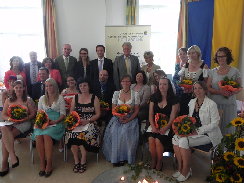 15 Praxisanleiterinnen und Praxisanleiter aus 6 verschiedenen Landeskliniken nahmen am 18. Juni 2014 ihre Dekrete entgegen. Insgesamt 2 Semester dauerte der Weiterbildungslehrgang „Praxisanleitung“ für diplomierte Fachkräfte an der Schule für allgemeine Gesundheits- und Krankenpflege Hollabrunn.