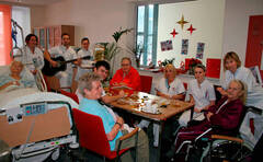 Die Patientinnen und Patienten der Palliativstation des Landesklinikums Scheibbs beim Basteln von Teelichthaltern