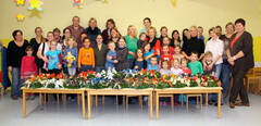Die für das Stecken eines Adventkranzes benötigten Materialen, wie Kerzen, Maschen und Tannenzweige, werden den Eltern und Kindern zur Verfügung gestellt. Anschließend können sie ihre Kreativität unter Beweis stellen. Natürlich darf dabei auch das Plaudern an diesem gemütlichen Nachmittag nicht zu kurz kommen. „Auch in diesem Jahr war diese Veranstaltung wieder ein großer Erfolg. Es ist immer wieder schön zu beobachten, mit welchem Eifer und Ehrgeiz sowohl die Kinder als auch deren Eltern bei der Arbeit sind“, so die Leiterin der Kinderbetreuungseinrichtung Brigitte Szukits.