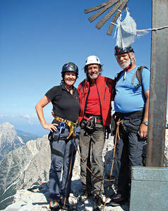 Milli Embst auf der Großen Zinne in Südtirol mit (v. l.) Bergsteigerlegende Hans Kammerlander und Gatten Herbert Embst