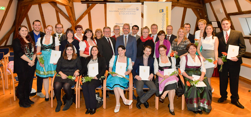 Am 02.02.2017 verabschiedete die Schule für allgemeine Gesundheits- und Krankenpflege Stockerau 9 Diplomierte Gesundheits- und Krankenpflegerinnen bzw. -pfleger sowie 17 Pflegeassistentinnen und Pflegeassistenten in den Berufsalltag. Bei der feierlichen Diplomübergabe gratulierte Landesrat Mag. Karl Wilfing in Vertretung von Landeshauptmann Dr. Erwin Pröll den stolzen Absolventen.