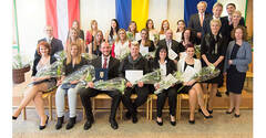 Die Absolventinnen und Absolventen bei der Abschlussfeier: (v.l.) 1. Reihe: Dittmann Martina, Hajek Marleen, Höld Alexander, Besunk Stefanie, Bindhofer Jutta, Grabner Daniela, stellvertr. Dir. Standl Susanne, Rosenstingl Karin, MBA; 2. Reihe: Jäger Stefan, Jungbauer Joana, Langer Christina, Gusc Dorota, Hermannine-Takacs Julia, Kafka Ernst, Kraus Christine, Abg. z. NÖ Landtag Hermann Hauer, Schwarz Ingrid, Dipl. KH-BW, MSc; 3. Reihe: Pieber Stefanie, Spitzer Patricia, Wimmer Bianca, Langs Andrea, Leeb Stefanie, Rosenits Tina, Tasueva Petimat, KR Bgm. Herbert Osterbauer, Mag. Martin Hallbauer