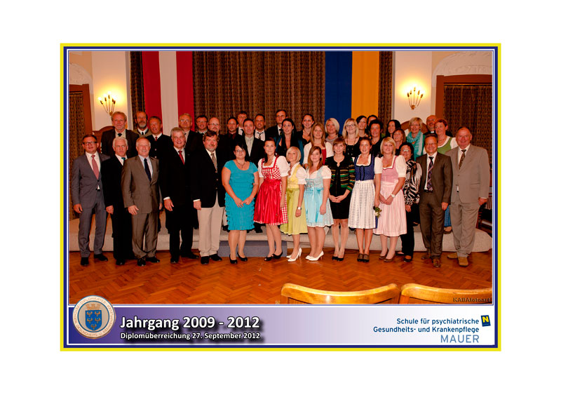 18 SchülerInnen nahmen am 27.09.2012 ihre heiß ersehnten Dekrete entgegen. Insgesamt drei Jahre dauerte die Ausbildung an der Schule für psychiatrische Gesundheits- und Krankenpflege, in denen den SchülerInnen umfangreiches theoretisches und praktisches Wissen im Bereich der Krankenpflege vermittelt wurde. Die Qualität der Ausbildung spiegelt sich nicht zuletzt in den Ergebnissen der Diplomprüfungen wieder: 6 Absolventinnen und Absolventen schlossen ihre Ausbildung mit ausgezeichnetem, 7 mit gutem und alle anderen mit Erfolg ab und können nun ihre Arbeit in der Gesundheits- und Krankenpflege aufnehmen.