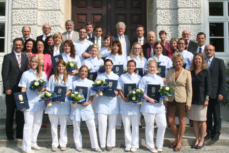 14 Schülerinnen und Schüler nahmen am 4. September 2014 ihre heiß ersehnten Diplome entgegen. Insgesamt 3 Jahre dauerte die Ausbildung an der Schule für allgemeine Gesundheits- und Krankenpflege, wo umfangreiches theoretisches und praktisches Wissen im Bereich der Krankenpflege vermittelt wurde. Die Qualität der Ausbildung zeigt sich in den Ergebnissen der Diplomprüfungen wider: 2 Absolventinnen und Absolventen schlossen ihre Ausbildung mit ausgezeichnetem, 2 mit gutem und alle anderen mit Erfolg ab und können nun ihre Arbeit in der Gesundheits- und Krankenpflege aufnehmen.