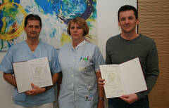 „Die Bereitschaft von Mitarbeiterinnen und Mitarbeitern des Landesklinikums Gmünd zur ständigen Weiterbildung ist nach wie vor ungebrochen und vorbildlich“, freut sich Pflegestandortleiterin Herta Weissensteiner, MBA. DGKS Jenny Neunteufel, DGKP Werner Glaser und DGKP Thomas Waldhäusl haben vor kurzem die berufsbegleitende Ausbildung zum Praxisanleiter an der Gesundheits- und Krankenpflegeschule Horn mit ausgezeichnetem und sehr gutem Erfolg bestanden. Den Abschluss des umfangreichen theoretischen und praktischen Unterrichtes bildete eine schriftliche Arbeit mit dem Thema „Entwicklung und Darstellung eines persönlichen Anleiterkonzeptes“.
