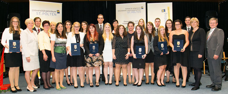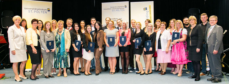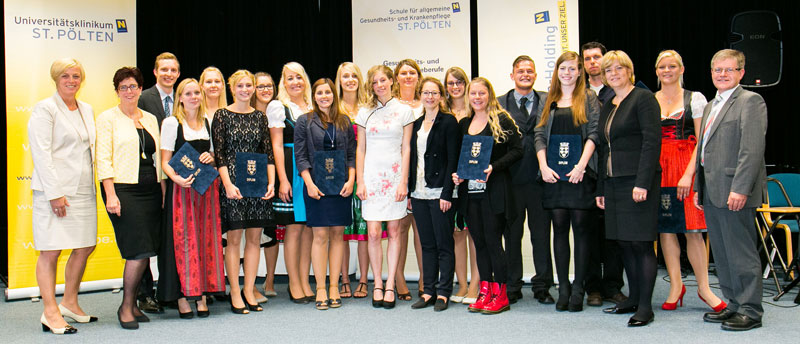 Am 9. September 2015 nahmen 35 Schülerinnen und Schüler der dreijährigen Ausbildung in der Gesundheits- und Krankenpflegeschule St. Pölten sowie 23 Absolventinnen und Absolventen des einjährigen Lehrgangs für Pflegehilfe ihre Dekrete entgegen. Nach dem erfolgreichen Abschluss der Ausbildungen können sie nun ihre Tätigkeit in der Gesundheits- und Krankenpflege aufnehmen.