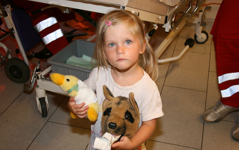 Hunde, Enten, Zebras, geflügelte Bären und allerhand andere geliebte Stofftiere mussten aufgrund ihrer Beschwerden in die Klinik gebracht werden. Bei Verdacht auf einen Knochenbruch wurde ein „Röntgenbild“ angefertigt, manchmal war eine Blutabnahme nötig. Zum Glück konnten alle tierischen Beschwerden geheilt werden. Dazu war aber in einigen Fällen eine Operation, manchmal auch nur eine Schmerzinfusion oder ein Verband nötig.