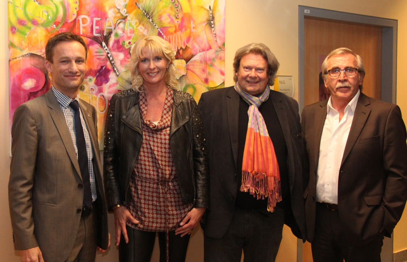 Bei der Vernissage: Der Regionalmanager DI Jürgen Tiefenbacher, Künstlerin Brigitte Wohlmuth, „Vermittler“ Oberarzt Dr. Gerhard Schifko und der Kaufmännische Direktor Dipl. KH-BW Josef Kober (v.l.)
