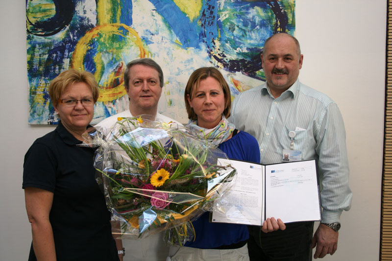 Pflegestandortleiterin Herta Weissensteiner, MBA, der Ärztliche Standortleiter Prim. Dr. Michael Böhm und der Kfm. Standortleitern Dipl. KH-BW Karl Binder gratulierten DGKS Alexandra Stacke, MAS herzlich zum erfolgreichen Masterabschluss.