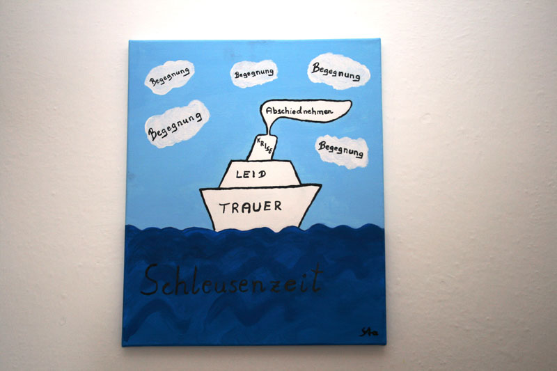 Bei der Präsentation der Masterarbeit veranschaulichte Alexandra Stacke das Thema mit selbstgemalten Bildern.