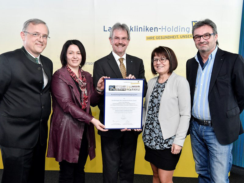 Bereits zum vierten Mal konnte sich auch die Gynäkologie-Abteilung des Landesklinikums Zwettl über die Urkunde für die am besten bewertete Gynäkologiestation in der Sparte Landeskliniken unter 300 Betten freuen. Abteilungsvorstand Prim. Gerhard Wolfram meint in diesem Zusammenhang: „Sehr erfreulich ist es, dass wir schon zum vierten Mal diese Auszeichnung bekommen. Ich freue mich für unser gesamtes Team, unsere geleistete Arbeit wird von unseren Patientinnen sehr positiv beurteilt.“