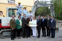 vorne: Ärztlicher Direktor Prim. Univ.-Doz. Dr. Paul Christian Hajek, Pflegedirektorin Dr. Evelyn Fürtinger, MAS, Regionalmanager DI Alfred Zens, MBA, Klubobmann Mag. Klaus Schneeberger, Prim. Dr. Doris Ehringer-Schetitska, Landesrat Mag. Karl Wilfing, Kaufmännischer Direktor Mag. Andreas Gamlich, Bauprojektleiter DI Markus Mandl, MSc, DI Thomas Müller; dahinter: OA Dr. Michael Foramitti, DGKS Rita Unterhuemer und DKKS Nicole Rossmann