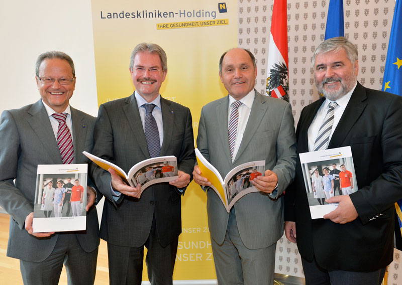 (v.l.) Dipl. KH-BW Helmut Krenn, Kaufmännischer Geschäftsführer der NÖ Landeskliniken-Holding; Landesrat Mag. Karl Wilfing; Landeshauptmann-Stellvertreter Mag. Wolfgang Sobotka; Dr. Robert Griessner, Medizinischer Geschäftsführer der NÖ Landeskliniken-Holding