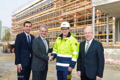 Mag. Dr. Bernhard Kadlec, Kaufmännischer Direktor, Universitätsklinikum St. Pölten; Landesrat Mag. Karl Wilfing; Lehrling Marcel Fuxsteiner; Dir. Bmstr. Ing. Johann Aigner, Niederlassungsleiter Porr St. Pölten