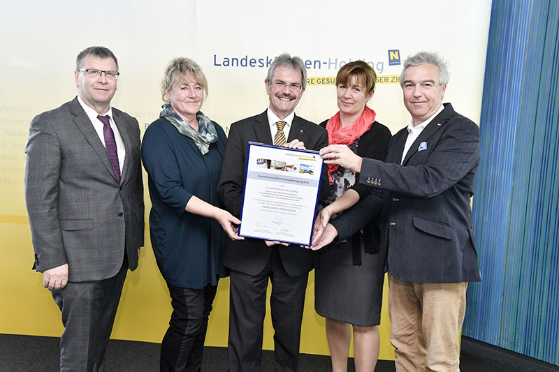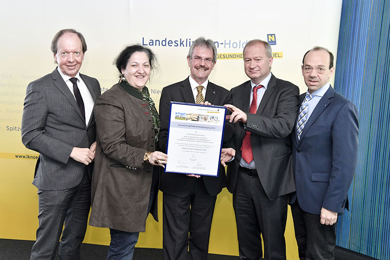 Gesamtwertung Horn beste KA über 300 Betten: (v.l.) Regionalmanager Dr. Andreas Reifschneider, Pflegedirektorin Mag. Elisabeth Klang, Landesrat Mag. Karl Wilfing, Stv. Ärztlicher Direktor Prim. Dr. Reinhold Klug, Kaufmännischer Direktor Mag. Franz Huber