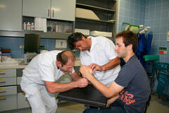 Mehr als 1.500 Teilnehmer aus 35 Nationen nahmen am diesjährigen Erzberg-Rodeo teil. Der 23-jährige Lunzer Lars Enöckl, der als bestplatzierter Österreicher durchs Ziel ging, zog sich bei dem Rennen eine Verletzung des Seitenbandes der linken Hand zu. OA Dr. Eduard Sporer, Leiter des Departments für Unfallchirurgie am LK Waidhofen/Ybbs, operierte den jungen Sportler an der linken Hand. Bei der unfallchirurgischen Kontrolle zeigte sich OA Sporer sehr zufrieden mit dem Ergebnis. Zur Stabilisierung der Hand wurde ein Thermoplastverband angelegt. Im LK Waidhofen/Ybbs wird diese Art der Verbandstechnik seit Anfang 2012 eingesetzt. „Diese Art von Verband ermöglicht dem jungen Sportler bei entsprechender Stabilisierung der verletzten Gelenke eine frühzeitige Wiederaufnahme des Trainings“, freut sich Sporer, der schon Sportgrößen wie Resi Stiegler oder Lindsey Vonn behandelt sowie die Biathletin Anastasiya Kuzmina operiert hat, die sechs Wochen nach der Operation in Vancouver Olympia-Gold holte.