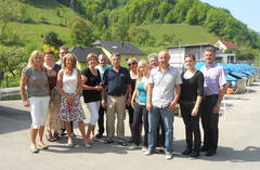 Die Betriebsbesichtigung fand am 9. Mai 2012 gemeinsam mit den Küchenleitern und Mitarbeitern der Küchen der Region Mostviertel und Region Mitte sowie Mitarbeiterinnen des zentralen Einkaufs der NÖ Landeskliniken-Holding statt. Karl Rabenhaupt präsentierte mit viel Engagement, Begeisterung und fachlichem Know-how seine Fischzucht die aus Saibling, Forelle und Lachsforelle besteht. Die meisten seiner Einrichtungen wurden von Ihm selbst entwickelt und gebaut. Angefangen vom Zufluss direkt aus dem glasklaren Weißenbach, welcher mit 250L/Sek. in seine Fischteiche einfließt, bis hin zu den einzelnen Fischbecken. Die Anlage besteht aus zwei großen Becken und einigen kleineren überdachten, jedes dieser Becken kann je nach Bedarf speziell verwendet werden. Die Küchenleiter und Mitarbeiter überzeugten sich persönlich von den Produkten, denn die Bewegungsfreiheit für die Tiere und das klare Wasser garantieren höchste Qualität aus der Region. Dies wurde mit dem Weg vom Teich bis hin zum vakuumierten Fischfilet veranschaulicht. Um zur Gänze von der geschmacklichen Qualität zu überzeugen, fand zum Abschluss noch eine Produktverkostung von Räucherforellen und einem sehr edlem Fischaufstrich statt. Ein großer Dank gilt dem Landesklinikum Amstetten, das die Organisation übernommen hat.