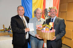 Organisationsleiter Rudolf Köck (Blutbank LK St. Pölten) mit Herrn Albert Czabek (Ehrung für 160x Blut spenden) und LR Mag. Karl Wilfing