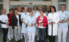 Die Stationsleitungen übernahmen den Blumengruß in Vertretung der Kolleginnen und Kollegen ihres Bereiches.