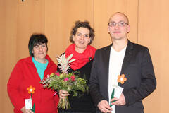 DGKP Christian Kainrath, Caritas Pflegedienstleiter und Regionsleiter Wr. Neustadt-Neunkirchen und DGKS Helga Pölzlbauer, Leiterin Sozialstation Kirchberg bedankten sich bei Pflegedirektorin Christa Grosz vom Landesklinikum Hochegg für die blühende Zusammenarbeit. „Gemeinsam stehen wir im Einsatz für das Leben. Das gute Gelingen ist geprägt durch das jahrelange hervorragende Zusammenspiel aller Beteiligten. Ein großes Dankeschön gilt daher allen MitarbeiterInnen in der Pflege und alle ÄrztInnen für die großartige Unterstützung unserer Arbeit. Wir freuen uns über das beispielgebende Miteinander, das eine optimale individuelle Betreuung schwer kranker Menschen ermöglicht“, so DGKP Kainrath.