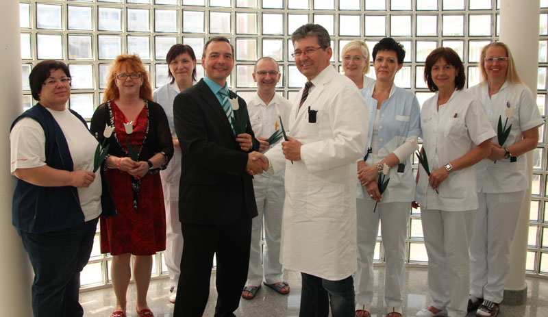 Stellvertretend bedankte sich der Caritas Regionalleiter Region Mistelbach/Gänserndorf, Marcus Piringer beim Pflegedirektor des Landesklinikums Mistelbach-Gänserndorf, DGKP Josef L. Strobl, akad. PD für die gute Zusammenarbeit. Das können auch DGKS Inge Neubauer von der Hauskrankenpflege der Caritas, DGKS Andrea Redlich, Caritas Hospizkoordinatorin für den Bezirk Gänserndorf, DGKS Dorothea Perka vom Palliativteam, Bereichsleiter DGKP Erich Schiller, Bereichsleiterin DKKS Karina Rameis, DGKS Irene Riecker vom Entlassungsmanagement, Bereichsleitung DGKS Gabriele Hirtl, BSc und die Stellvertretende Pflegedirektorin OSr. Gabriele Rudorfer, akad. PD bestätigen.