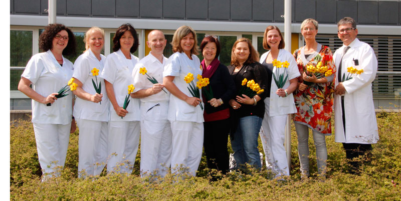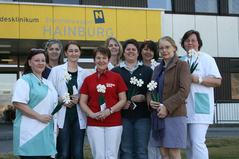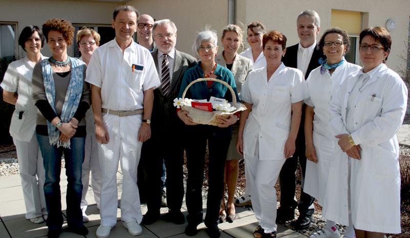 LK Korneuburg-Stockerau: (v.l.) DGKS Melanie Kainzbauer (Stationsleitung Chirurgie), DGKS Claudia Zwölfer (Mobiles Palliativteam), DGKS Angelika Bruny (Stationsleitung Interdisziplinäre Abt.), OA Dr. Leopold Fendrych (Leitung Onkologie-Ambulanz), Dr. Harald Retschitzegger (Mobiles Palliativteam), Dr. Franz Zdrahal (Ärztlicher Leiter Caritas der Erzdiözese Wien), DGKS Karin Böck (Leitung Palliativteam), Univ.-Prof. Dr. Gabriela Kornek (Konsiliar-Onkologin), DGKS Eva Exner (Leitung Onkologie-Ambulanz), DGKS Maria Böhm (Qualitätsmanagement), Erich Borovnyak, MBA (Leiter Mobiles Caritas Hospiz der Erzdiözese Wien), DGKS Eunice Wolfsdorf (Stationsleitung Gynäkologie), OÄ Dr. Hristina Kmetova