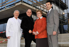 Bei der Gleichenfeier: (v.l.) Ärztlicher Direktor Prim. Dr. Friedrich Steger, LH-Stv. Mag. Wolfgang Sobotka, Pflegedirektorin Christine Köckeis, MSc, Kaufmännischer Direktor Mag. Klaus Watzinger