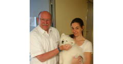 Fr. Mag. Katharina Mares-Schrank arbeitet als Heil- und Sonderpädagogin sowie als Psychotherapeutin an der klinischen Abteilung für Kinder- und Jugendpsychiatrie & Psychotherapie. Ihr gehört auch die junge Hundedame. Mares-Schrank: „Mit dem Einzug von Tanja in meiner Familie kam die Idee wieder auf, einen Therapiehund an der KJPP einzusetzen, diesmal mit dem Vorteil, dass Tanja bereits vom Welpenalter an ihre Aufgaben an der Kinderpsychiatrie gewöhnt werden kann und somit von Beginn an in der KJPP „wie in einer zweiten Familie“ sozialisiert wird. Die Bilder des kleinen „Eisbären“ ließen nicht nur die Herzen der Klinikleitung und der Mitarbeiterinnen der Abteilung schmelzen.“