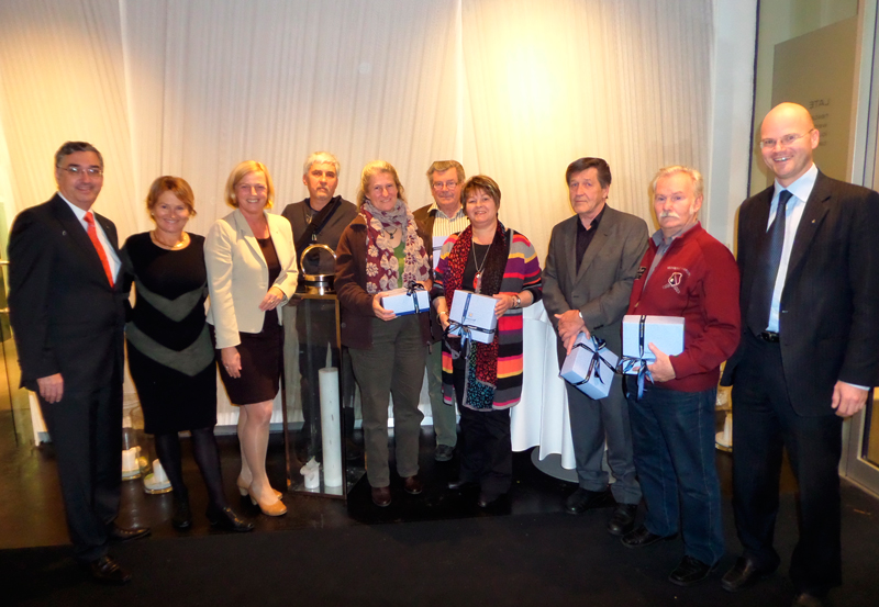 Die Klinikleitung des Landesklinikums Krems und Regionalmanagerin Christa Stelzmüller überreichten den Patientenvertretern Maria Hetzer, Regula Zürcher, Karl Wolf, Alois Wieninger Horst Zoiser und Heinz Maderner, eine kleine Aufmerksamkeit zum Dank für ihre Mitarbeit.