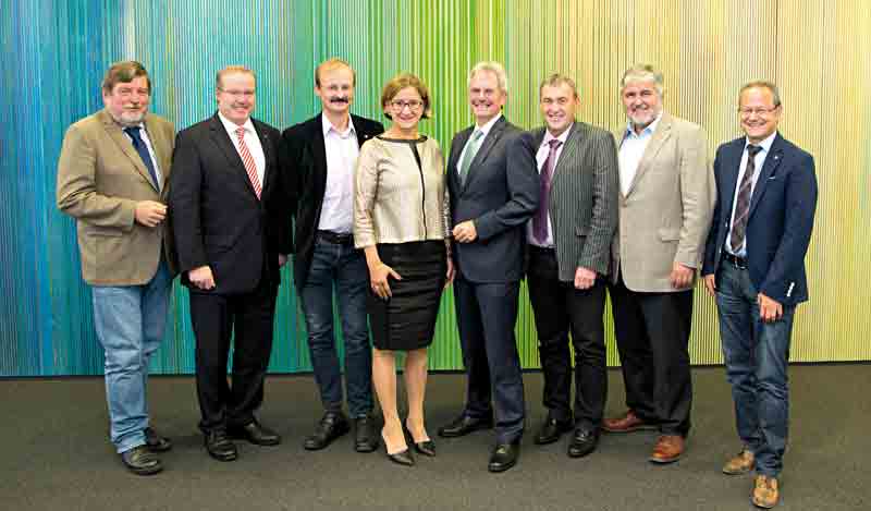 Spannender „Im Dialog“ zur Novelle des Spitalsärztegesetzes: (v.l.) Dipl. KH-BW Peter Maschat, Mag. Andreas Achatz, Dr. Ronald Gallob, Landeshauptmann-Stellvertreterin Mag. Johanna Mikl-Leitner, Landesrat Mag. Karl Wilfing, Eduard Böhm, Dr. Robert Griessner, Dipl. KH-BW Helmut Krenn