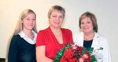 Pflegedirektorin Dr.in Evelyn Fürtinger, MAS (r.) und DGKS Michaela Faulhaber, MBA (l.), die neue stellvertretende Pflegedirektorin, bedankten sich bei DGKS Maria Scheibenreif für ihr langjähriges Engagement und die gute Zusammenarbeit.
