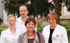 (v.l.) Bereichsleiterin DGKS Renate Trummer, Stationsleitung DGKP Herbert Dopler, DGKS Susanne Gabauer und Pflegedirektorin Dr. Evelyn Fürtinger, MAS