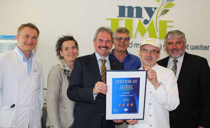 (v.l.) Prim. Univ.-Prof. Dr. Peter Schnider (Ärztlicher Direktor Landesklinikum Hochegg), DGKS Christa Grosz, MBA (Pflegedirektorin Landesklinikum Hochegg), Landesrat Mag. Karl Wilfing, Dipl. KH-BW Ferdinand Zecha (Kaufmännischer Direktor Landesklinikum Hochegg), Josef Tauchner (Küchenleiter Landesklinikum Hochegg), Dr. Robert Griessner (Medizinischer Geschäftsführer der NÖ Landeskliniken-Holding)