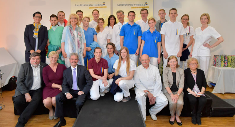 LR Mag. Karl Wilfing, Klinikleitung und „Models“ – Mitarbeiterinnen und Mitarbeiter des Universitätsklinikums Tulln, sowie Schüler der Gesundheits- und Krankenpflegeschule Tulln.