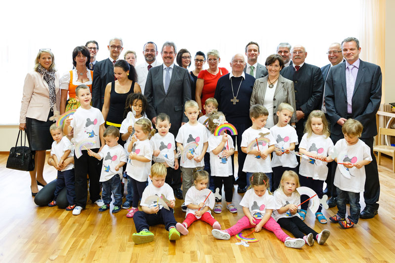 (v.l.) STR Silvia Zeissl, Pflegedirektorin Bettina Riedmayer, BH-Stellv. Mag. Kimon Poulios, Kaufm. Dir. KH BW Wolfgang Palatinus, Birgit Molnar, STR Elisabeth Staffenberger, Ärztl. Dir. Prim. Dr. Lukas Koppensteiner, LR Mag. Karl Wilfing, Martina Zeitelhofer, Katja Risch, Leitung KIGA Karin Niessl-Kammlander, Stadtpfarrer Mag. Othmar Posch, RM DI Jürgen Tiefenbacher, LAbg Christa Vladyka, Med. Geschäftsführer NÖ LK-Holding Dr. Robert Griessner, Bgm. Josef Zeitelhofer, VzBgm. Raimund Holcik, VzBgm. Helmut Schmid und die Kinder der „Mäusestube“
