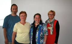 (v.l.) Selbsthilfegruppenansprechpartner DGKP Rudolf Haller, Präsidentin Waltraud Moldaschl, OÄ Dr. Esther Veronika Hartl und Pflegestandortleiterin Herta Weissensteiner, MBA