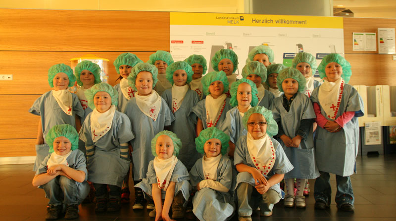 Am 24. April 2014 freute sich das Landesklinikum Melk über ganz besondere Besucher. Eine Gruppe 4-6 Jähriger aus dem Kindergarten Kettenreith, bestens zum Thema Klinik und Gesundheit vorbereitet durch die Kindergartenpädagogin E. Leonhartsberger, genoss eine Führung durch die Klinik.