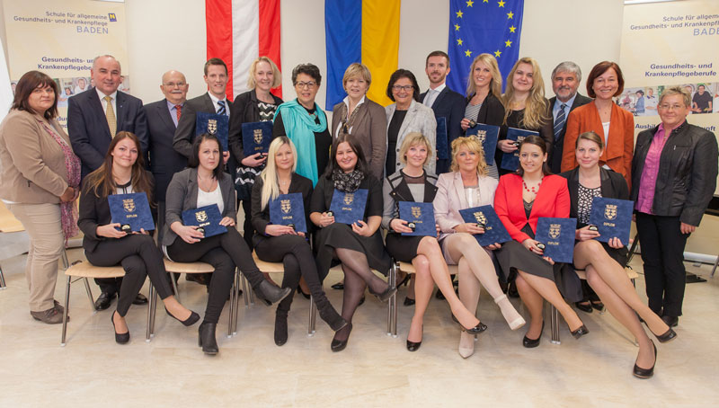 Der Freitag der 13. war heuer ein besonderer Glückstag für 13 Diplomandinnen und Diplomanden der Schule für allgemeine Gesundheits- und Krankenpflege Baden. Konnten die Absolventinnen und Absolventen des Jahrganges 33 doch genau an diesem Tag ihre wohlverdienten Abschlusszeugnisse aus den Händen von Landesrätin Mag. Barbara Schwarz, in Vertretung von Landeshauptmann Dr. Erwin Pröll, entgegen nehmen.