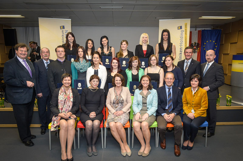Die feierliche Übergabe der Diplome fand im Festsaal des Landesklinikums St. Pölten statt. In Vertretung von Herrn Landeshauptmann Dr. Erwin Pröll gratulierte Landtagsabgeordnete Doris Schmidl den Schülerinnen und Schülern mit lobenden Worten und wünschte ihnen für die Zukunft alles Gute. Frau Direktorin Edith Haiderer und das gesamte Lehrerteam freuten sich besonders über die hohe fachliche und soziale Kompetenz der Absolventinnen und Absolventen.