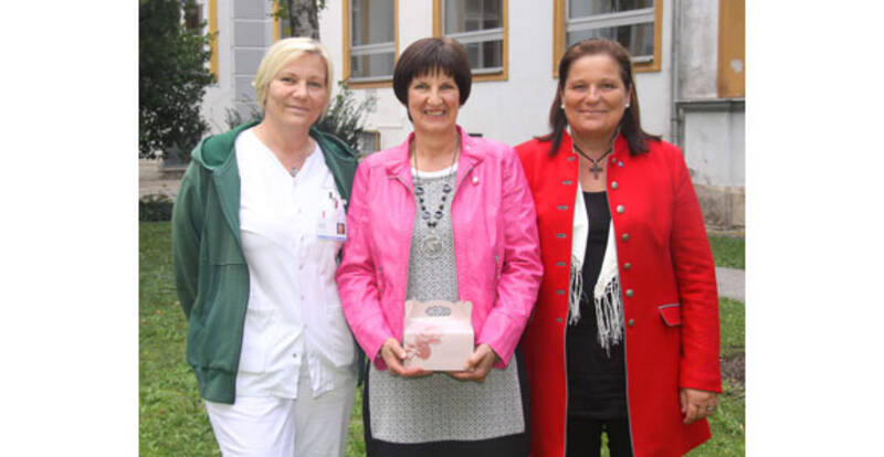 Bereichsleiterin DGKS Claudia Mathae und Pflegedirektorin Dr. Evelyn Fürtinger, MAS, verabschiedeten sich von Edith Schandl (Mitte).