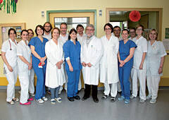 Ein Teil des Teams der Kinder- und Jugendheilkunde im Universitätsklinikum Tulln mit Prim. Univ.-Prof. Dr. Hans Salzer (Mitte) und Stationsleitung DKKS Irene Ulrich (links daneben)